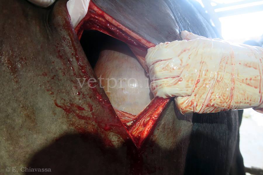 CORREZIONE CHIRURGICA DISLOCAZIONE ABOMASO DESTRA: DETORSIONE VOLVOLO, ESTERIORIZZAZIONE E FISSAZIONE PILORO
